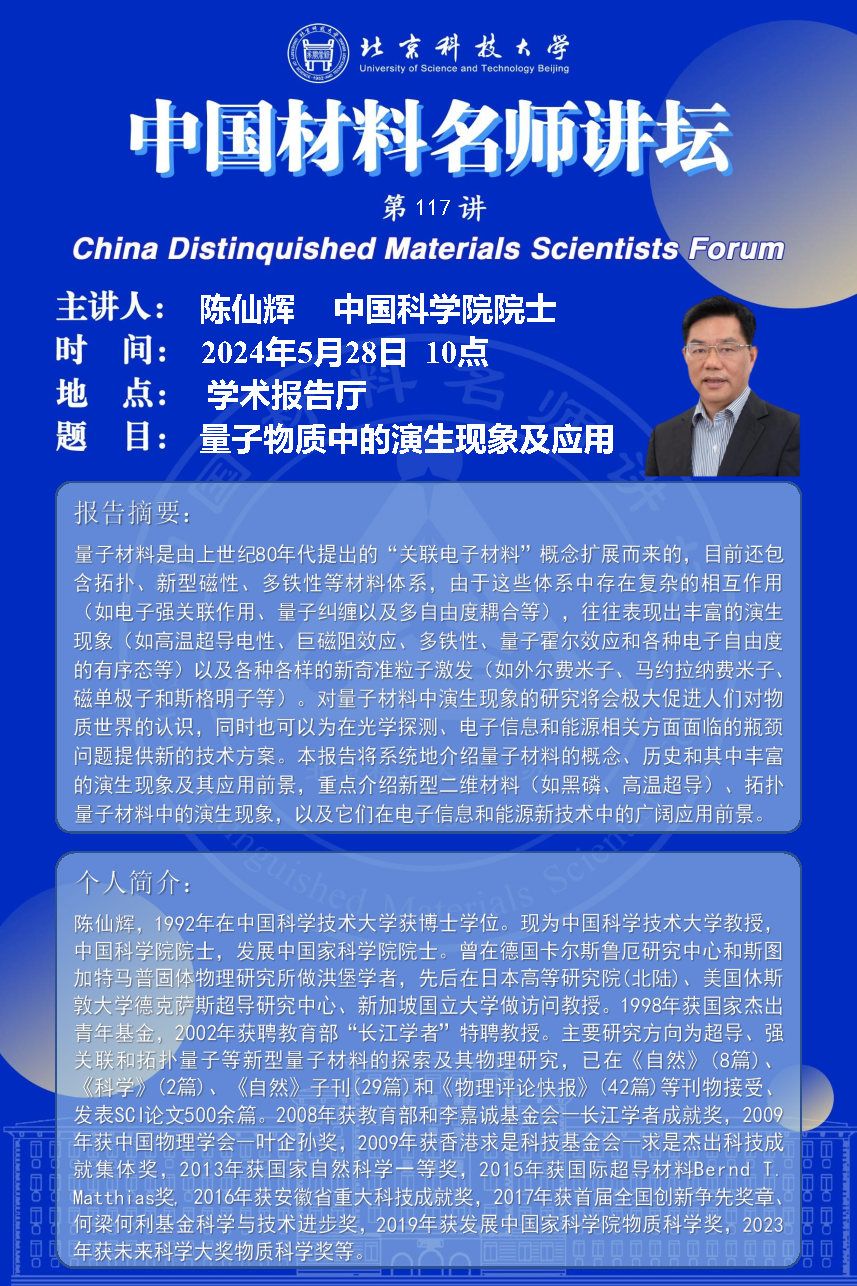 中国材料名师讲坛第117讲——中国科学院院士陈仙辉 教授
